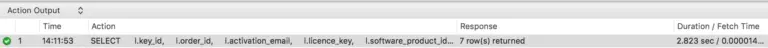 这个例子中,我们把licenses 表和posts 表通过order_id 连接起来同时限制post type 为shop_order。这是为了通过保持数据的完整性来保证我们只使用正确的订单记录,但是事实上这在查询中是多余的。我们知道这是一个关于安全的赌注,在posts 表中software license 行是通过order_id 来跟 WooCommerce order 相关联的,这在PHP 插件代码中是强制的。让我们移除join 来看看有什么提升没有: