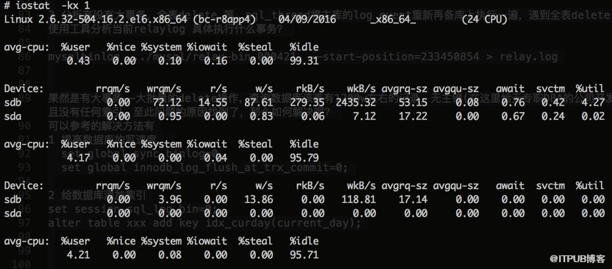 一背景 早上7点多接到一个数据库服务器空间报警,磁盘空间不足。登陆数据库查看,MySQL slave 大量延迟,有68G 的relay log。查看slave status 发现Relay_Log_Pos ,Exec_Master_Log_Pos 位点始终不变,当时的状态展示如下: