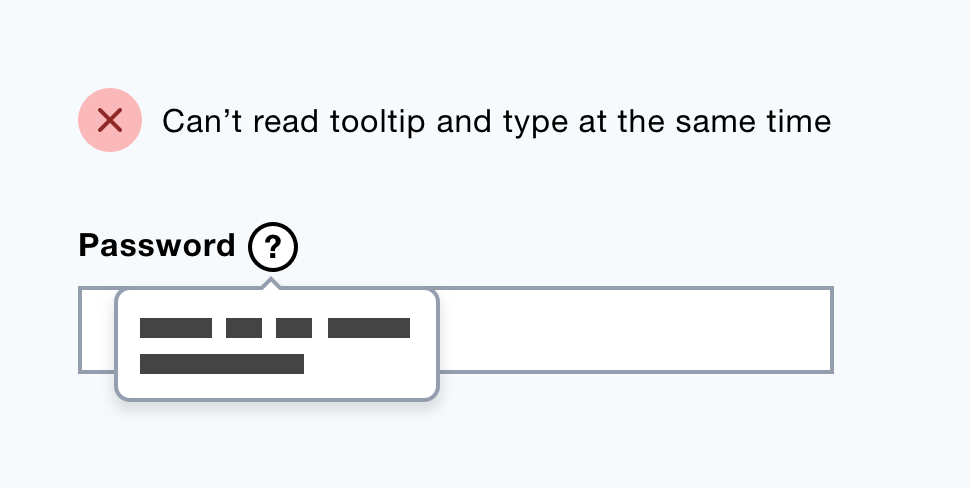 Some users won’t notice a tooltip which means there’s a high risk they’ll never see the content it contains.