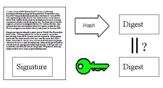 苏珊再对信件本身使用Hash函数,将得到的结果,与上一步得到的摘要进行对比。如果两者一致,就证明这封信未被修改过。