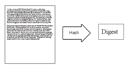 鲍勃给苏珊回信,决定采用"数字签名"。他写完后先用Hash函数,生成信件的摘要(digest)。