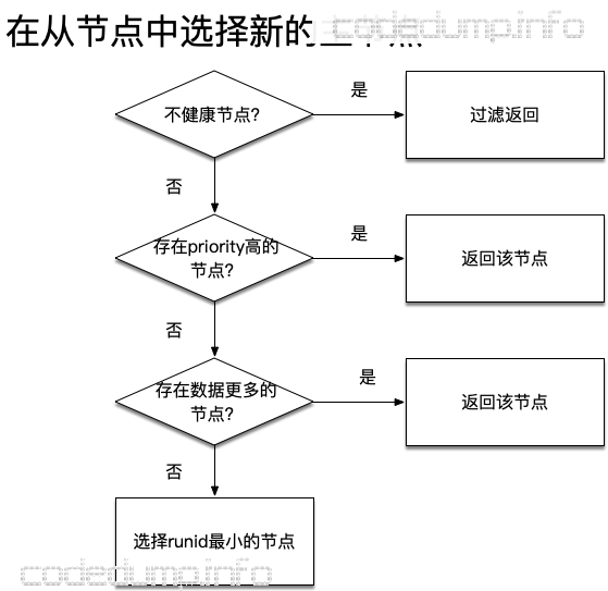 - 到了这里,所有剩余从节点的状态都是一样的,选择runid最小的从节点。