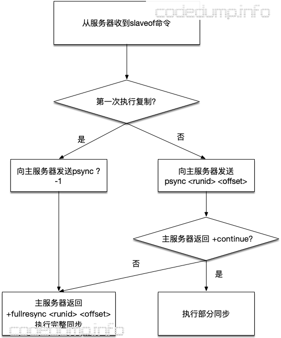 - 否则,如果前面从服务器已经同步过部分数据,那么从服务器向主服务器发送psync