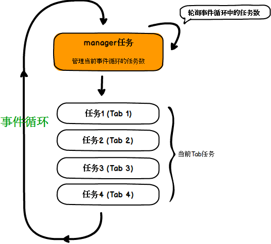 那么这里肯定会涉及到browser对Tab的管理,如何动态增减?我使用的是pyppeteer,因为CDP相关操作均是异步,那么对Tab的动态增减其实就等价于协程任务的动态增减。