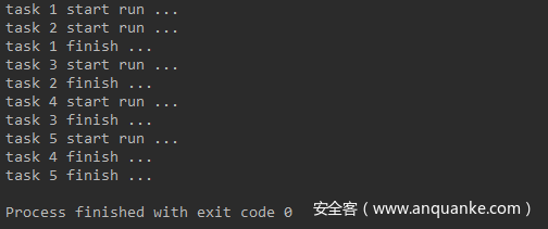import asyncio class Scheduler(object): def __init__(self, task_queue): self.loop = asyncio.get_event_loop() self.max_task_count = 10 self.finish_count = 0 self.task_queue = task_queue self.task_count = len(task_queue) def run(self): self.loop.run_until_complete(self.manager_task()) async def tab_task(self, num): print("task {num} start run ... ".format(num=num)) await asyncio.sleep(1) print("task {num} finish ... ".format(num=num)) self.finish_count += 1 async def manager_task(self): while len(self.task_queue) != 0 or self.finish_count != self.task_count: if len(asyncio.Task.all_tasks(self.loop)) - 1 < self.max_task_count and len(self.task_queue) != 0: param = self.task_queue.pop(0) self.loop.create_task(self.tab_task(param)) await asyncio.sleep(0.5) if __name__ == '__main__': Scheduler([1, 2, 3, 4, 5]).run()