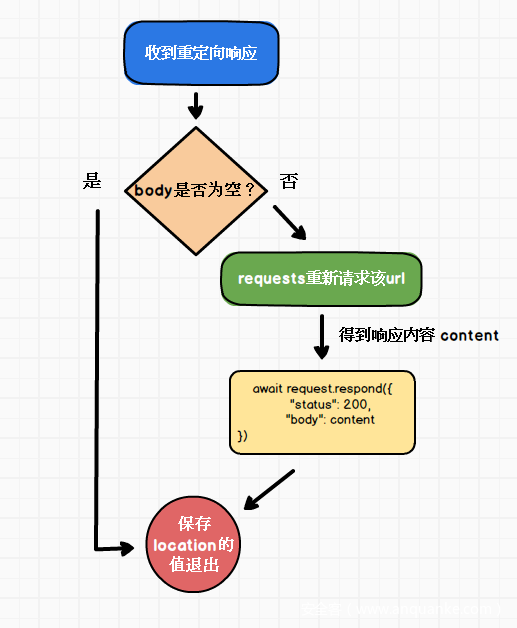 在解决了前端的导航请求问题之后,处理后端重定向响应就很简单了。当后端重定向响应的body中不包含内容,则跟随跳转或者返回location的值然后退出。如果后端重定向响应的body中含有内容,则无视重定向,渲染body内容,并返回location的值。