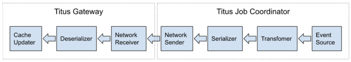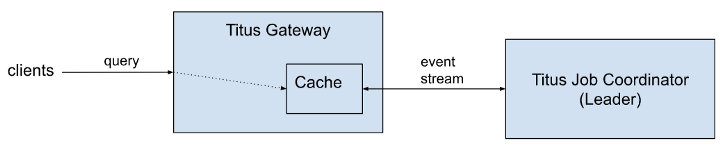The state from Titus Job Coordinator is replicated over a persistent stream connection, with low event propagation latencies. A new wire protocol provided by Titus Job Coordinator allows monitoring of the cache consistency level and guarantees that clients always receive the latest data version. The cache is kept in sync with the current leader process. When there is a failover (because of node failures with the current leader or a system upgrade), a new snapshot from the freshly elected leader is loaded, replacing the previous cache state. Titus Gateways handling client requests can now be horizontally scaled out. The details and workings of these mechanisms are the primary topics of this blog post.