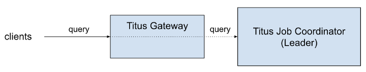 Titus Gateway handles user requests. A user request could be a job creation request, a query to the active data store, or a query to the archive store (the latter handled directly in Titus Gateway). Requests are load balanced across all Titus Gateway nodes. All reads are consistent, so it does not matter which Titus Gateway instance is serving a query. For example, it is OK to send writes through one instance, and do reads from another one with full data read consistency guarantees. Titus Gateways always connect to the current Titus Job Coordinator leader. During leader failovers, all writes and reads of the active data are rejected until a connection to the active leader is re-established.