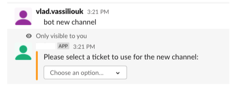 Finally, we decided to use chat commands instead of slash commands so that all commands sent to the bot would be visible to the members of the Slack channel.