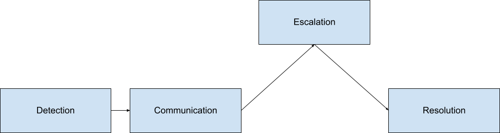 We have defined four separate phases of an incident: detection, communication, escalation and resolution. Each of the bot’s commands automates tasks that would normally require coordination during these distinct phases.