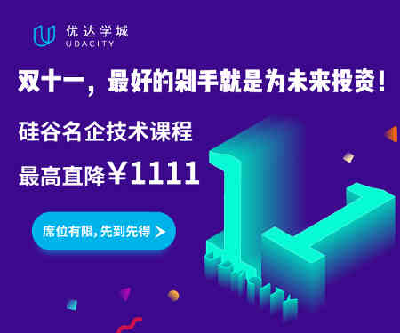 今年双十一,与其囤积一年都用不完的便宜货,不如来优达学城投资未来提升自我。11月1日~11月11日,课程全场最高减¥1111,让你轻松享有硅谷学习资源!