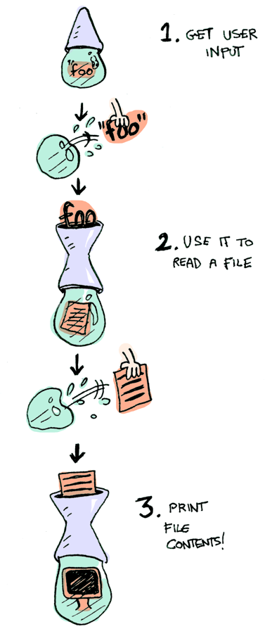 昨天,我读到了Aditya Bhargava的文章,他画了很多图。我想了半天,终于恍然大悟。下面,我就用这些图来解释Monad。