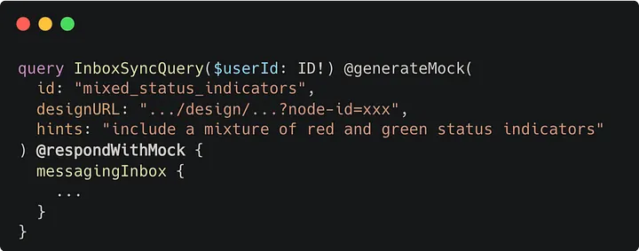 In addition to generating realistic mock data with @generateMock, we also wanted to empower client engineers to iterate on features without waiting for the backend server implementation. A second directive, @respondWithMock, works alongside @generateMock to make this possible:
