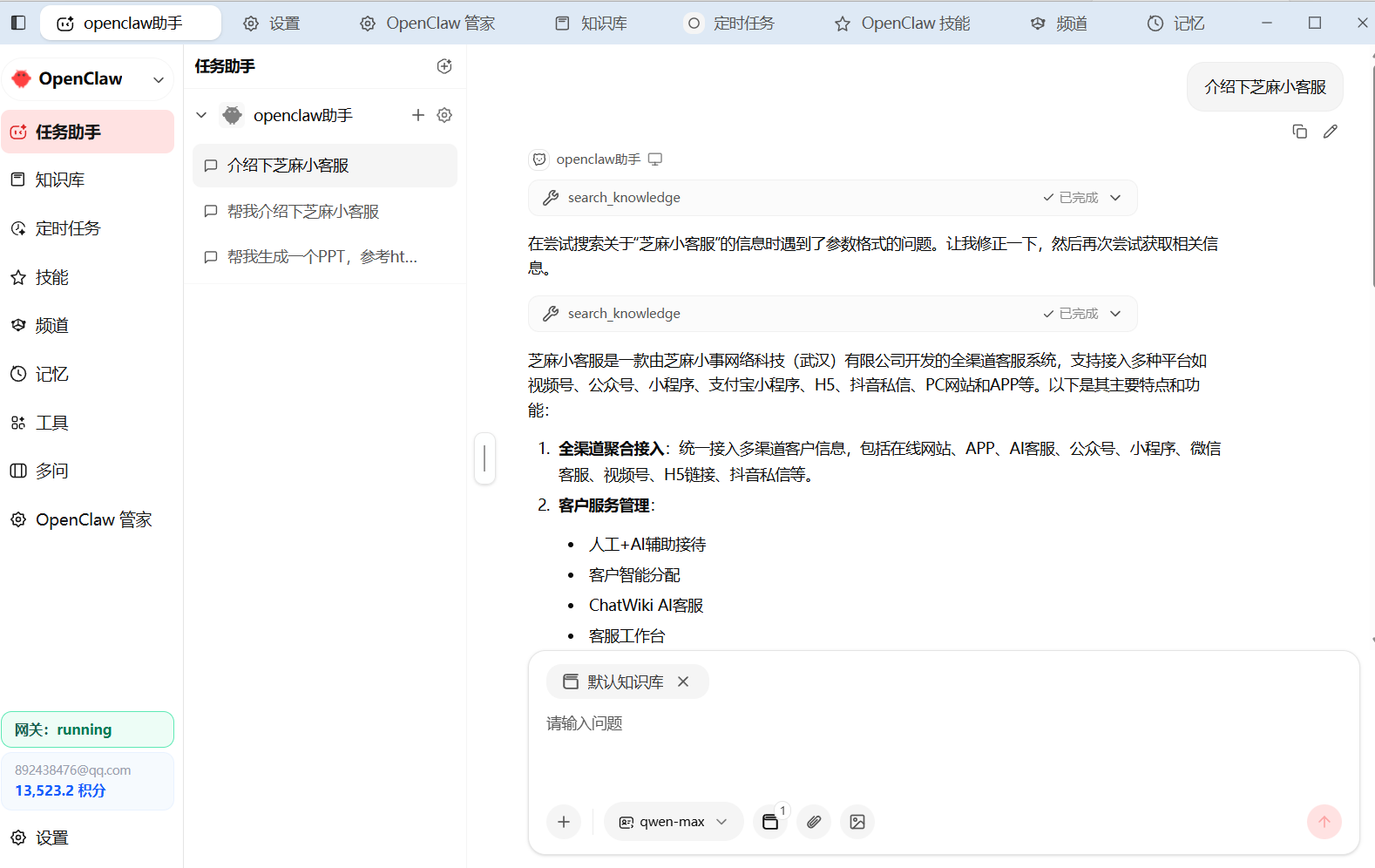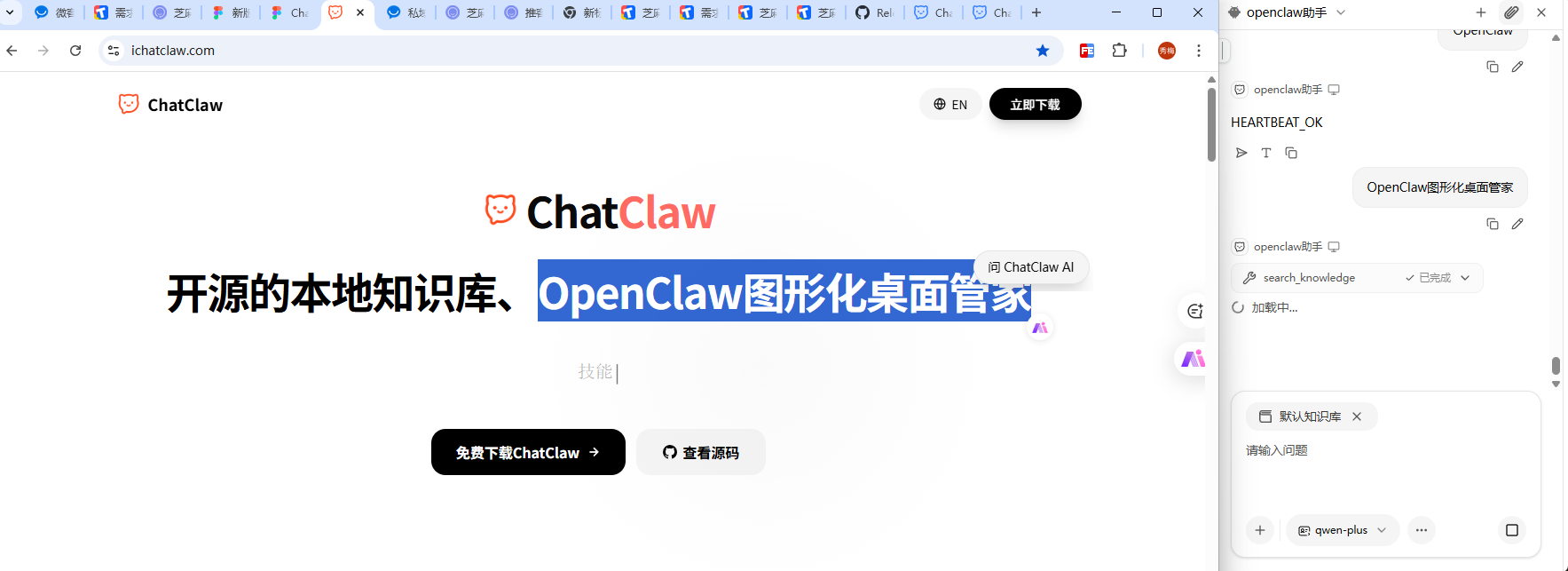 ChatClaw是一个快速部署的个人AI智能体工具,5分钟即可搭建本地知识库AI助手。具有沙箱安全防护,支持连接WhatsApp、Telegram、Slack等主流通讯应用,内置技能市场、知识库、记忆和计划任务等功能。采用Go语言开发,安装包小巧(约30MB),资源占用少。