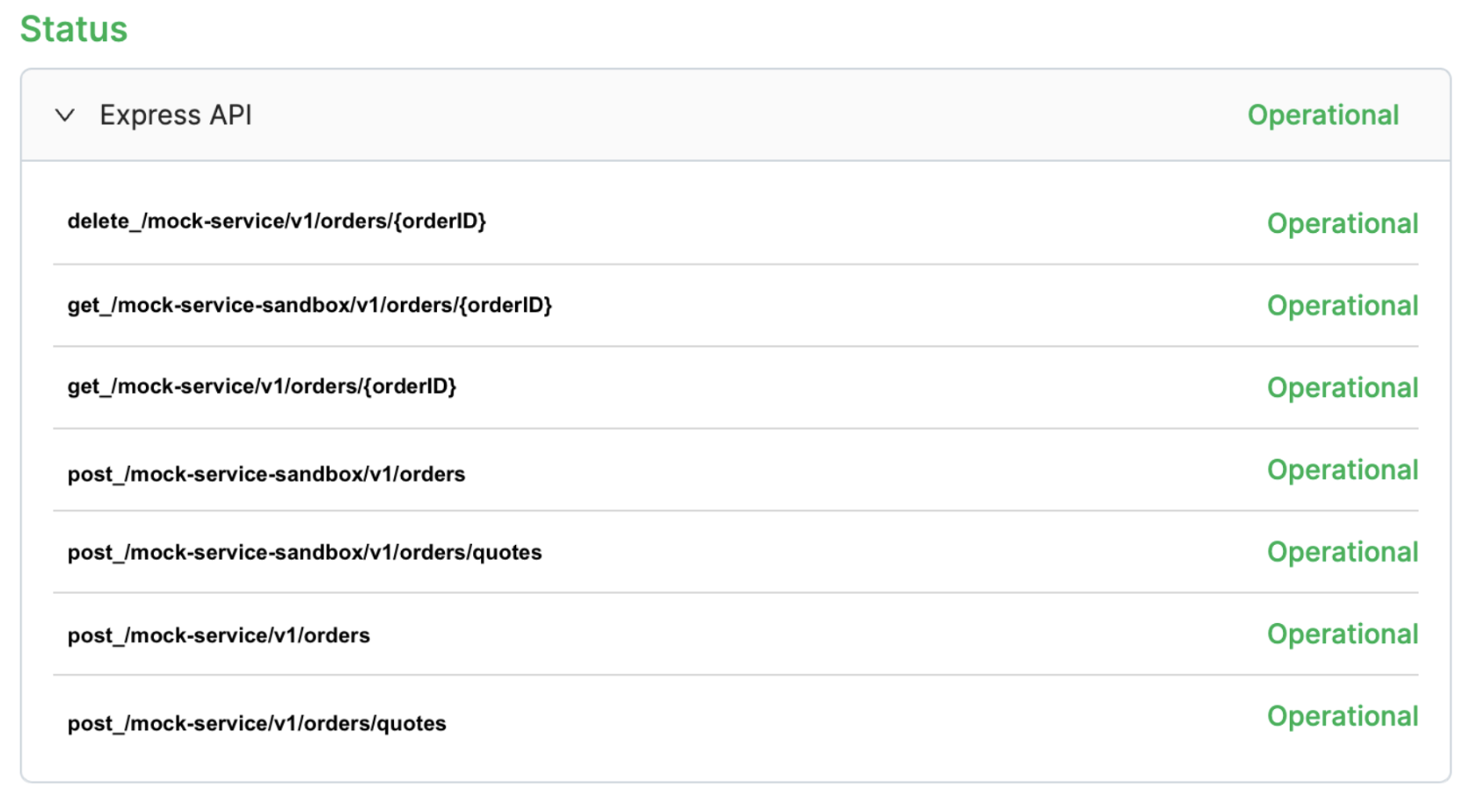 Figure 3: Endpoint status dashboard of express API for company Alpha. *Endpoints are mocked for security purposes.