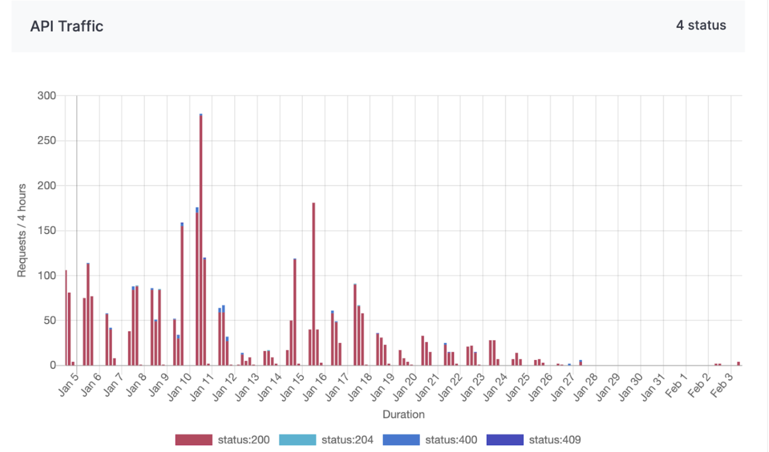 Figure 1: API traffic chart from 5th Jan 2025 to 4th Mar 2025.