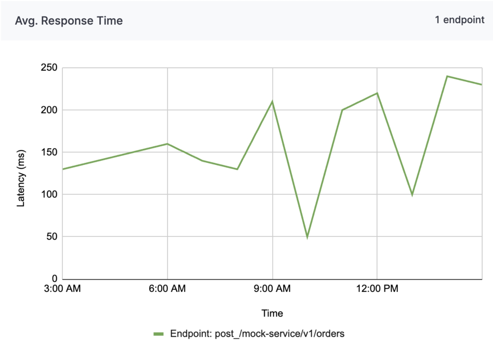 Figure 2: Average response time chart from 12 Mar 2025 3am to 12 Mar 2025 3pm (Endpoints are mocked for security purposes).