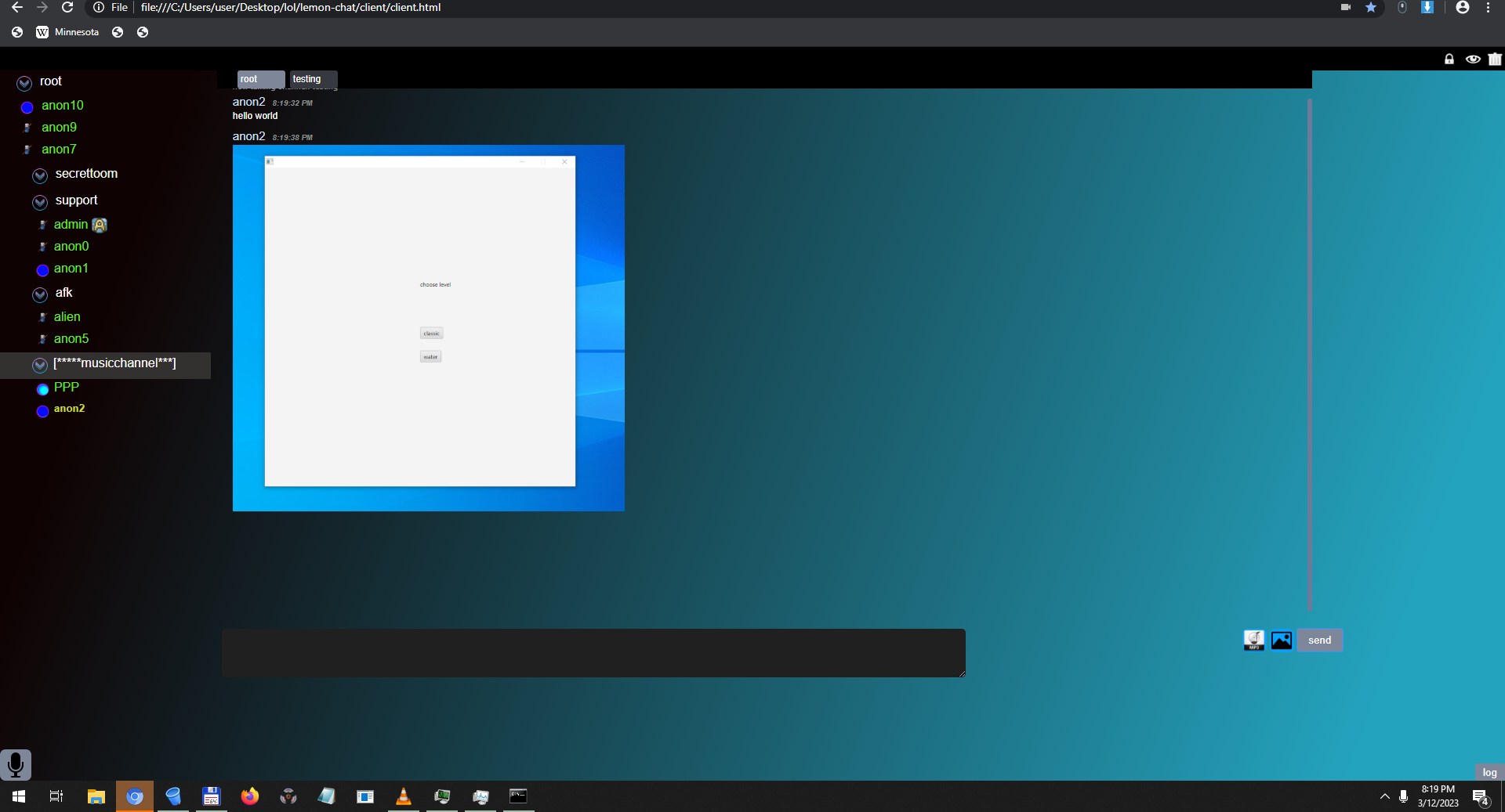 lemon-chat是一个轻量级的自托管聊天系统,使用C语言编写服务器和单HTML文件客户端。支持文本、图片和音频消息,具有用户管理、频道管理和端到端加密功能,适用于团队或个人安全通信。