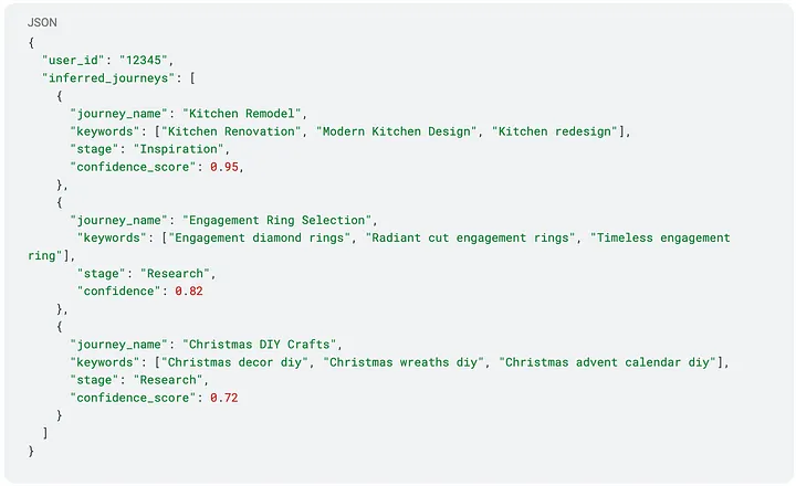 The user journeys could be used in downstream applications for retrieval and ranking. The desired output is a list of distinct user journeys. Each journey should ideally be represented with: