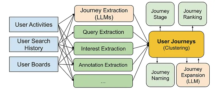 Pinterest has always been a go-to destination for inspiration, a place where users explore everything from daily meal ideas to major life events like planning a wedding or renovating a home. Our core mission is to be an inspiration-to-realization platform. To fulfill this, we recognized a critical challenge: we needed to move beyond understanding immediate interests and comprehend the underlying, long-term goals of our users. Therefore, we introduce user journeys as the foundation for recommendations.