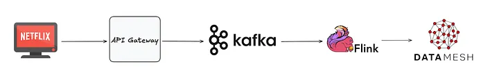 Member actions in the Netflix app are published to our API Gateway, which then writes them as records to Apache Kafka topics. Kafka is the mechanism through which internal data applications can consume these events. It provides durable, replayable streams that downstream processors, such as Apache Flink jobs, can consume in real-time.