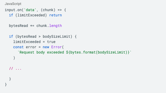 The patch, implemented by the Next.js maintainers on Oct 8 2025 and released a few days later, is pretty straightforward. The cloneBodyStream function now raises an exception as soon as the in-memory buffer exceeds a size limit, which defaults to 10MB.