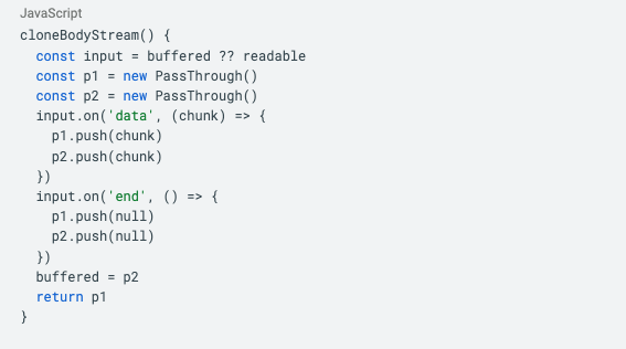 What our agent discovered and exploited is a vulnerability in the cloneBodyStream function in body-stream.ts. This function copies a streamed request into memory before passing it through to middleware. Since there are no limits on the size of the stream here, a large enough stream will cause the server to run out of memory and crash.