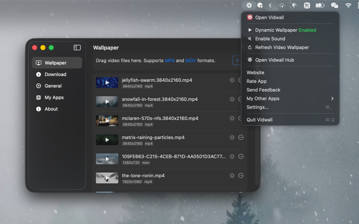 Vidwall允许用户将4K视频设置为动态桌面壁纸,支持MP4和MOV格式,操作简单,只需拖放视频即可生动化桌面。
