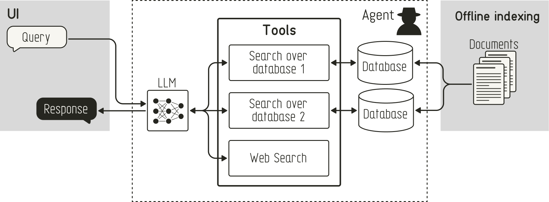 Agentic RAG addresses many aspects of the limitations of naive RAG: It defines the retrieval step as a tool that the agent can use. This change enables the agent first to determine whether additional information is needed, decide which tool to use for retrieval (e.g., a database with proprietary data vs. a web search), and assess whether the retrieved information is relevant to the user query.