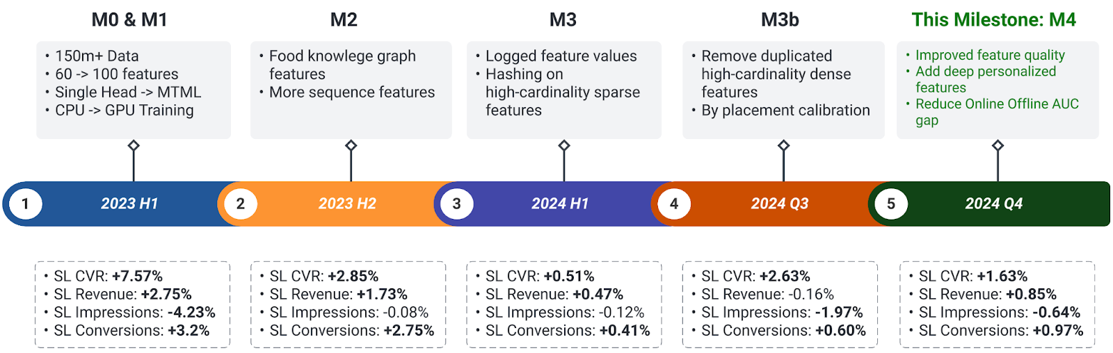 Figure 1: Restaurant Discovery Ads Ranking Deep Learning Milestones